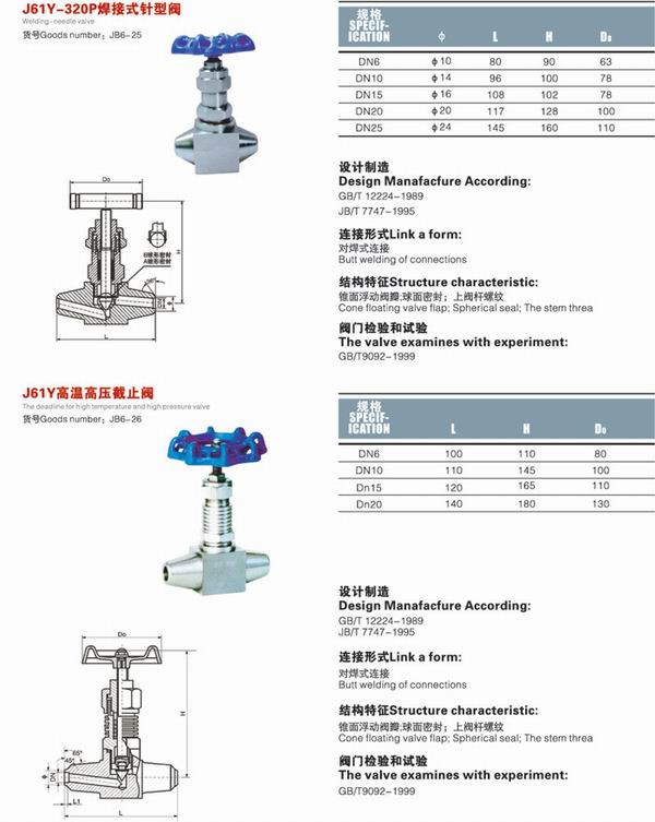 J61Y焊接式針型閥、J63Y焊接式針型閥資料: