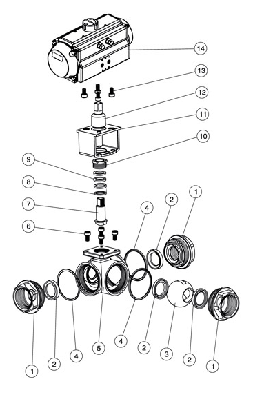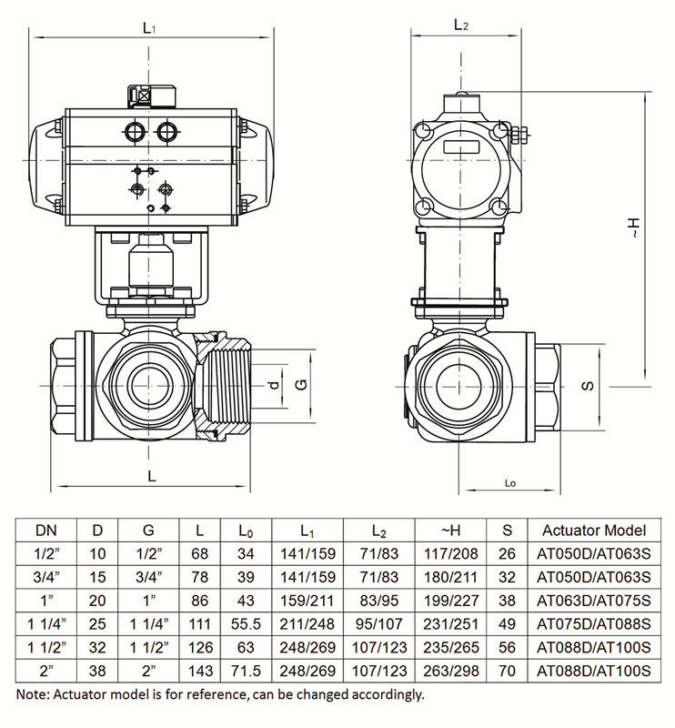 進口氣動三通內(nèi)螺紋球閥(L型、T型流向圖)