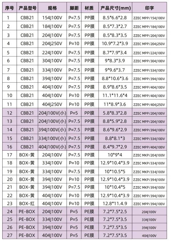 無(wú)線(xiàn)充專(zhuān)用CBB電容 ZZEC 404J100V P=15
