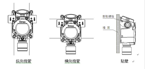 RBK-6000-ZL30探測器安裝方式可采用抱管裝、支架安裝或貼壁安裝,應(yīng)確保安裝牢固可靠。