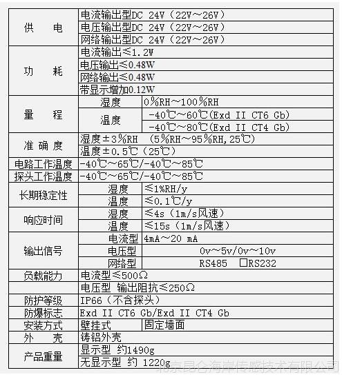 技術(shù)參數(shù) 北京昆侖海岸防爆溫濕度變送器JWSK-GACW6DBEF隔爆溫濕度變送器