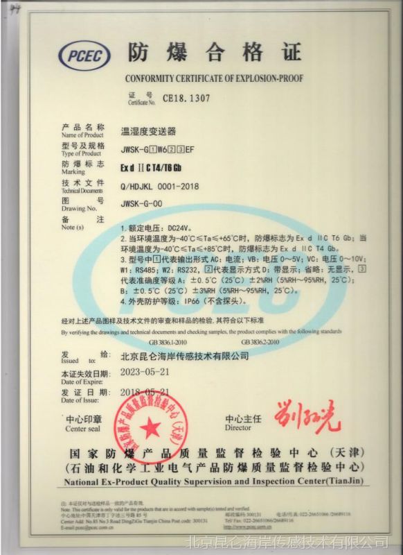 北京昆侖海岸JWSK-GACW6DBEF防爆型溫濕度變送器