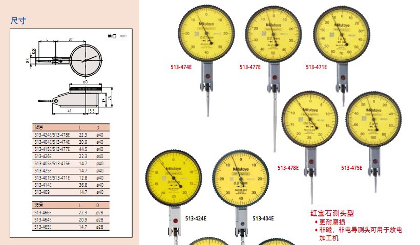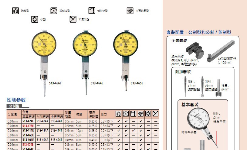 日本原裝三豐杠桿千分表水平型/公制型513-424E