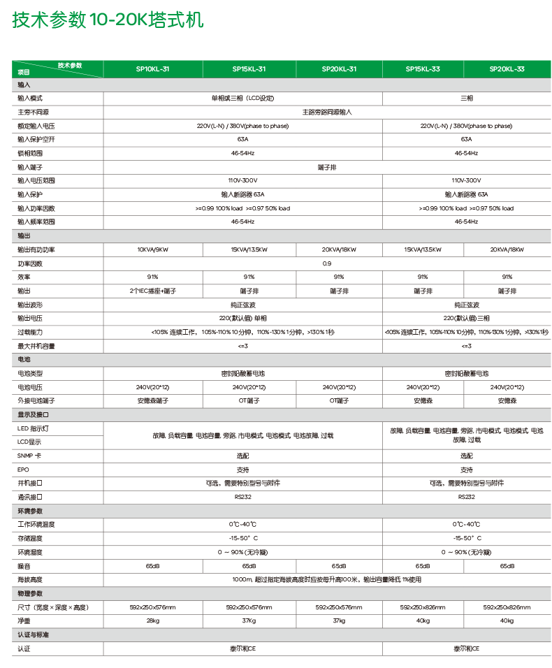 施耐德SP20KL-31P UPS電源 參數(shù)及信息