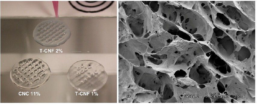 左圖,打印不同濃度的纖維素納米晶體和纖維素微纖絲