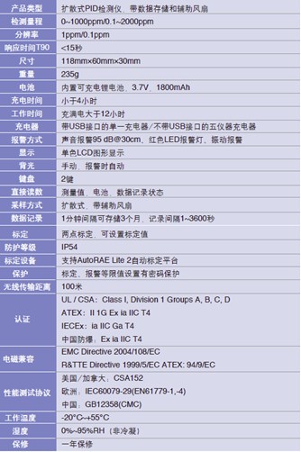 ToxiRAE Pro主機+傳感器、指定電池、橡膠保護套、鱷魚夾、校定適配器、充電底座/PC通訊適配器、數據電纜、交流適配器ProRAE Studio II儀表配置及數據管理軟件光盤、文件光盤、快速操作指南、保修卡、PID開蓋工具、檢定證書