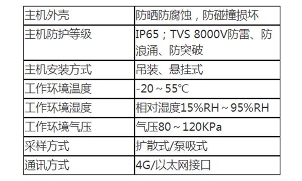監(jiān)測(cè)設(shè)備:四氣兩塵、氣象五參、TVOC