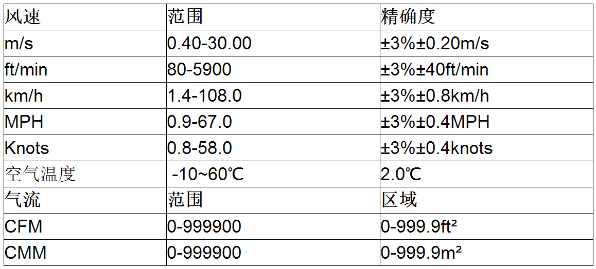 本產(chǎn)品顯示空氣溫度、空氣流量和空氣速度。