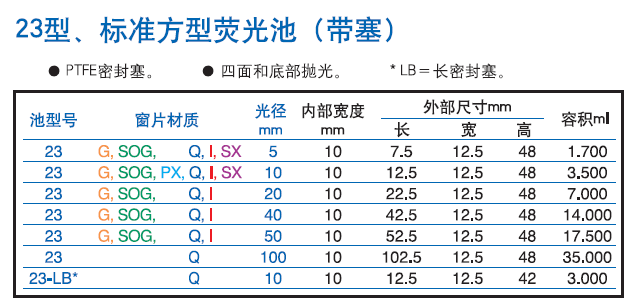 標(biāo)準(zhǔn)熒光比色皿Type 3,23