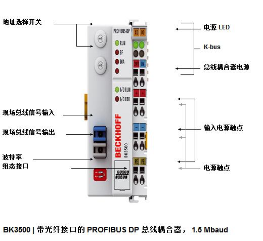 用于連接 多 64 個(gè)總線端子模塊、帶光纖接口的 PROFIBUS DP 總線耦合器,1.5 Mbaud |